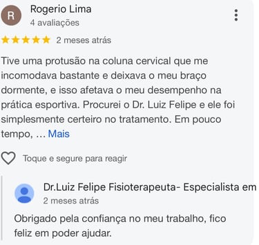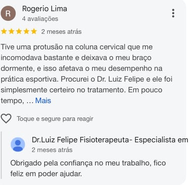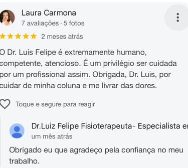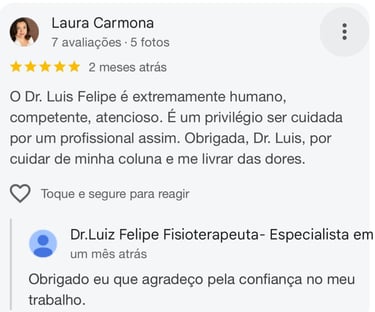 Com mais de 15 anos de experiência, eu Dr. Luiz Felipe sou fisioterapeuta especialista em tratamento de disfunções da coluna vertebral, atuando com técnicas atualizadas e baseadas em evidências científicas.